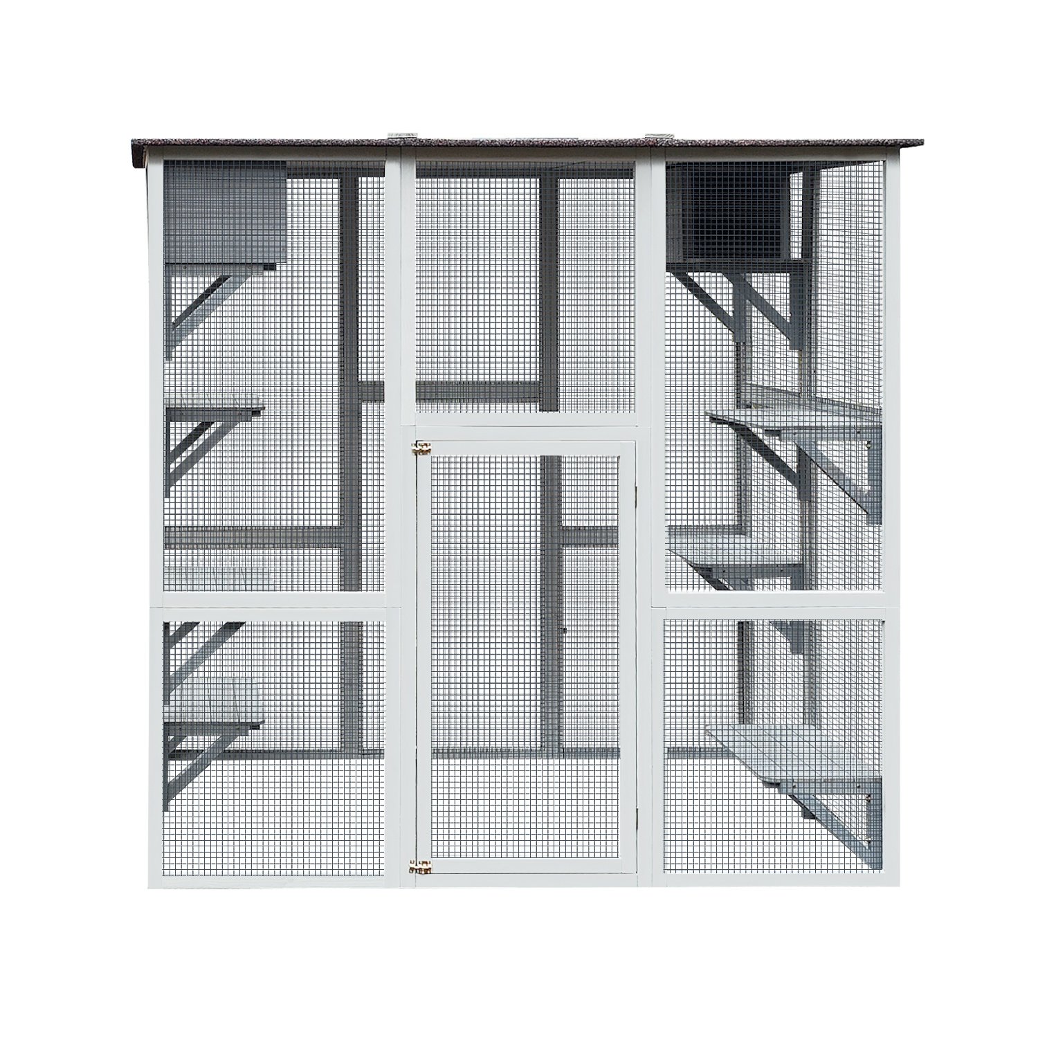 All-Weather Asphalt Roof: The cat cage comes with asphalt roof which takes advantage of sun protection and rainproof, perfectly withstanding to the outdoor elements.
