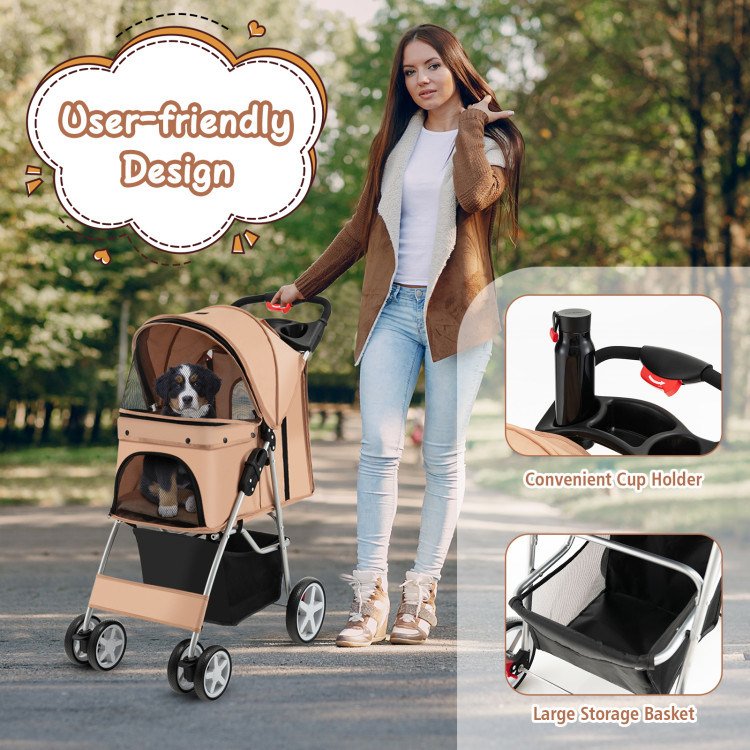 1.Portable and Folding Design: This pet stroller with quick-folding design and 11 lbs light weight is quite simple to carry and store. Therefore, you can hang out with your beloved furry friend without effort and create a perfect place for your pet to explore the outside world.