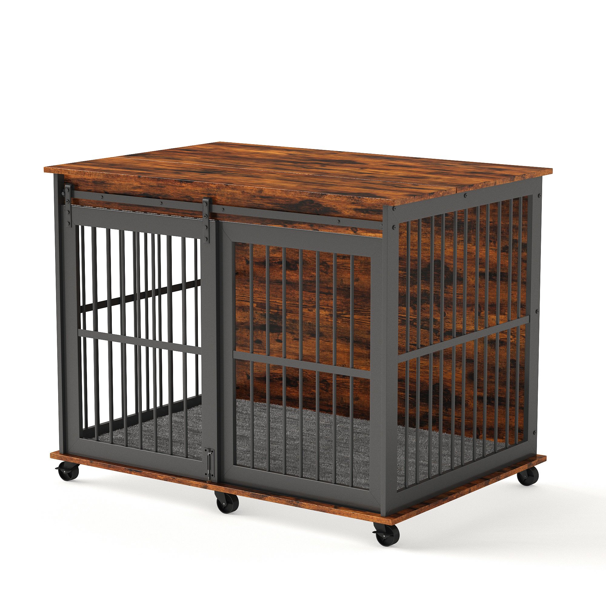 Furniture dog crate sliding iron door dog crate with mat. (Rustic Brown,43.7''W x 30''D x 33.7''H).